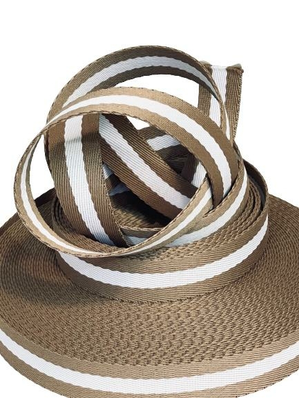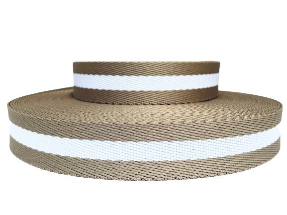 Alça Chic 3 Cm Caqui Com Faixa Branco
