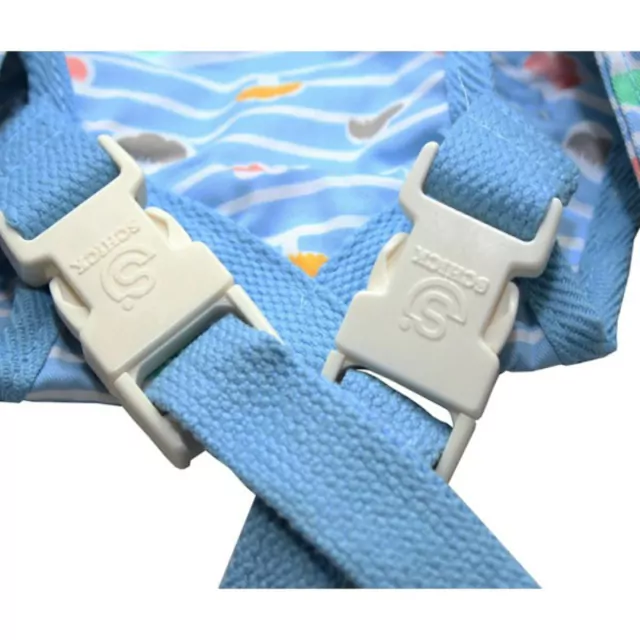 Use em você mesmo, vista o carregador de bebê em uma superfície plana (numa cama), feche os botões laterais e regularize as fivelas. Segure o bebê dentro do carregador aproximando a você, vista o carregador com as alças transpassadas nas costas certifique-se de que está completamente encaixado e travado para uso.